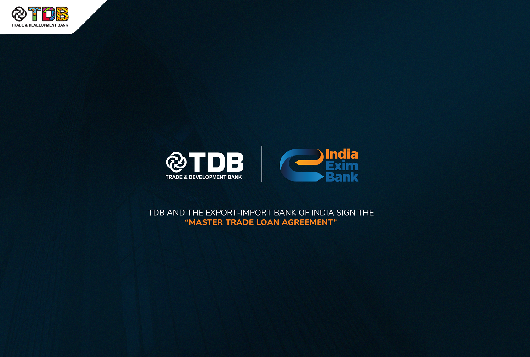 Trade and Development Bank JSC (TDB) has officially signed the “Master Trade Loan Agreement” with the Export‑Import Bank of India (IndiaEXIM), launching a new partnership in trade finance cooperation.