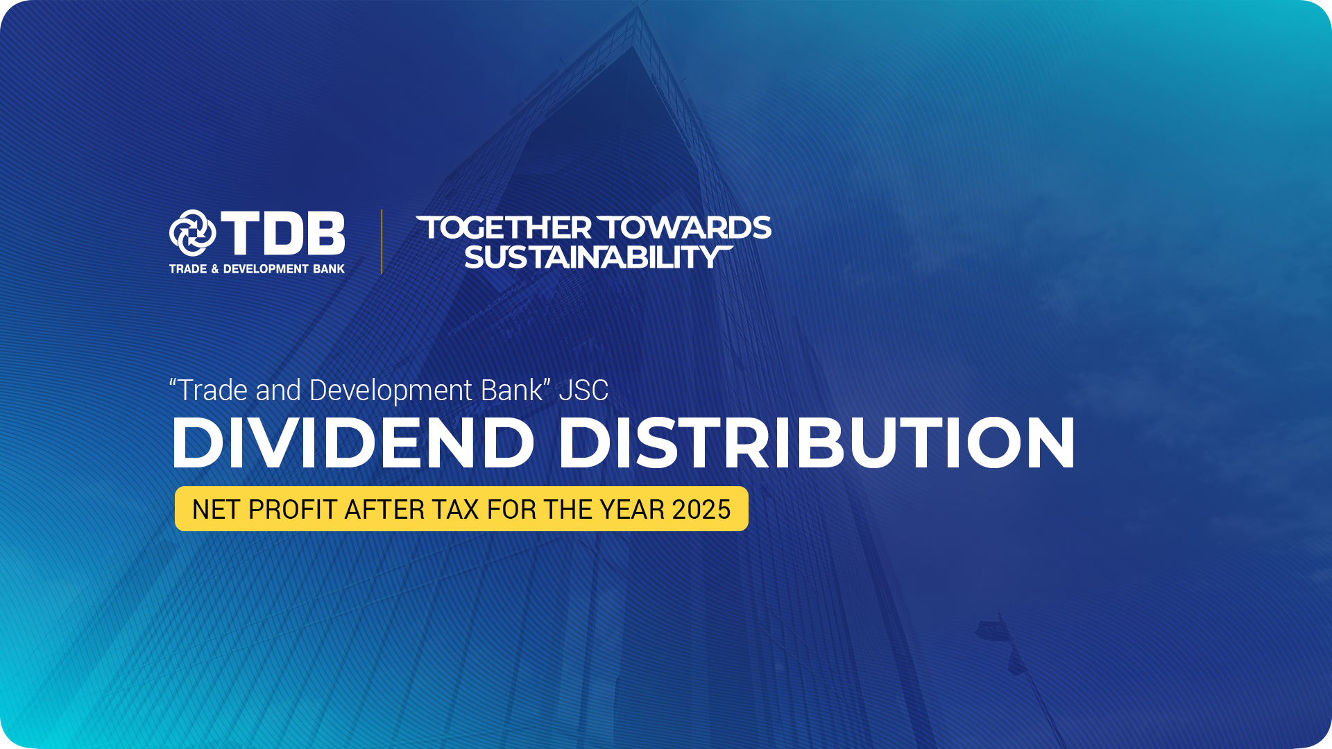 The Representative Governing Board of “Trade and Development Bank” JSC (TDB), by Resolution No.14 dated March 23, 2026, has approved the distribution of dividends from the Bank’s 2025 net profit after tax. In accordance with the resolution, shareholders will receive MNT 692.00 (six hundred ninety‑two) per common share.