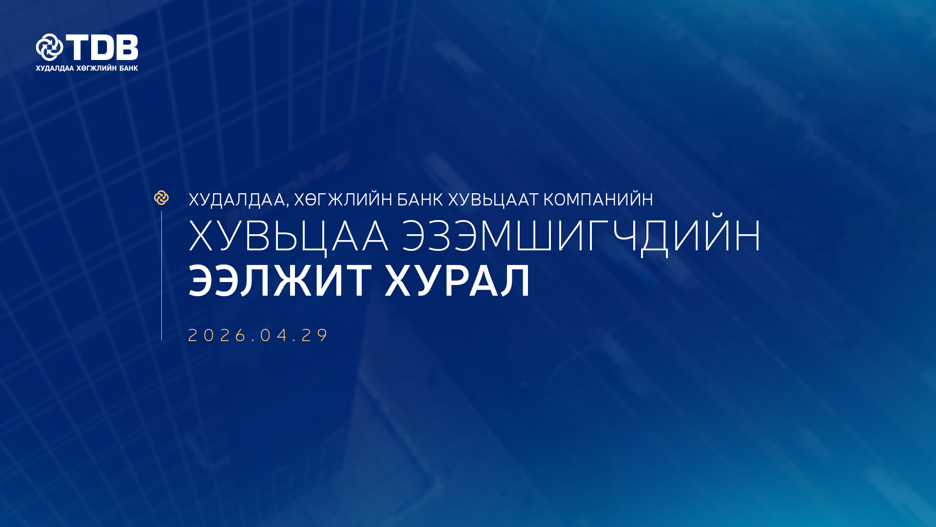 Хуралд зайнаас оролцох хувьцаа эзэмшигчид 2026 оны 4 дүгээр сарын 29-ний өдрийн 9 цаг 45 минутаас өмнө investor.tdbm.mn цахим хуудаст хандан зааврын дагуу хуралд цахимаар оролцож, саналаа өгнө.